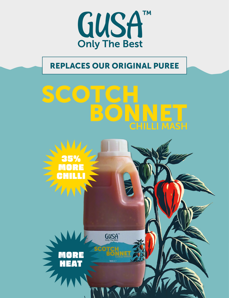 We've taken everything you loved about the original Scotch Bonnet Chilli Puréeand made it even better. With 35% MORE CHILLI, it delivers bolder flavour and extra heat.